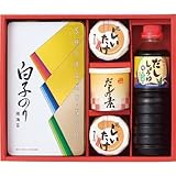 乾物・調味料セット(のり・海苔・しょう油・だし・佃煮・椎茸) ![]() 価格: 2,565円 レビュー評価: レビュー数: ●化粧箱入:サイズ247×294×76●マルトモだしの素75g・キッコーマンだししょうゆ500ml・白子焼のり(2切10枚2袋)×各1・磯じまんしいたけ85g×2●重量約1.6kg●賞味期限:常温にて365日●のしB4【小麦】 |